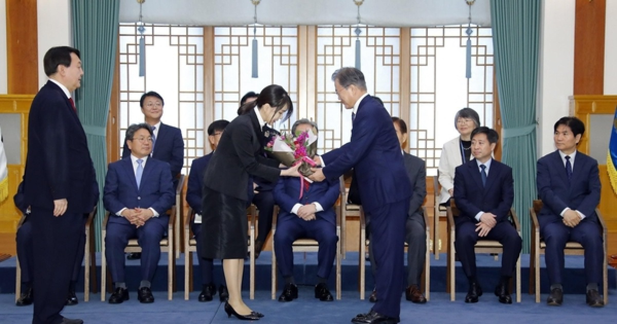 ▲ 청와대 임명장 수여식 윤석열 검찰총장이 지난해 7월 25일 부인 김건희 코바나컨텐츠 대표와 함께.